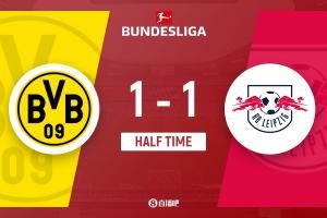 半场-多特蒙德暂1-1RB莱比锡 扬-库托破门吉拉西送助攻